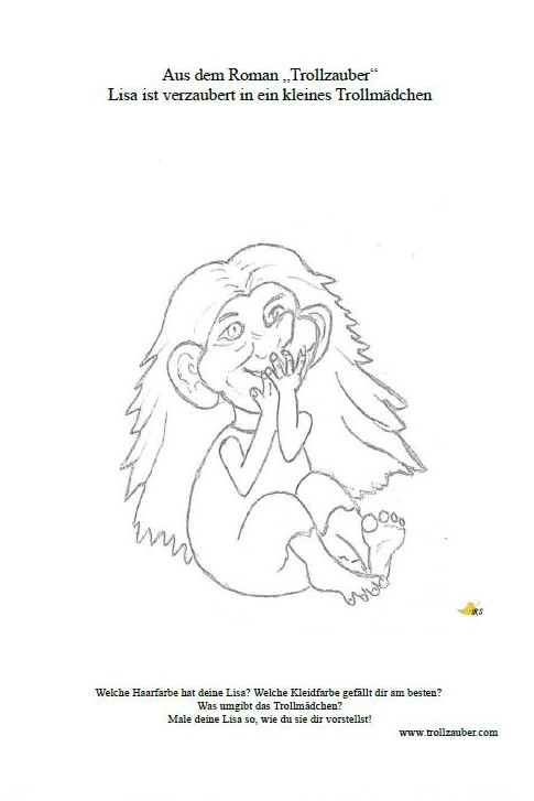 Diese Bilder sind für euch zum kostenlosen Herunterladen. Beim Ausmalen und Ergänzen der Bilder sind eurer Fantasie keine Grenzen gesetzt. Wenn ihr wissen wollt was meine Helden so alles erlebt haben, dann lest meinen Roman Trollzauber oder lasst ihn euch von euren Eltern oder Großeltern vorlesen.